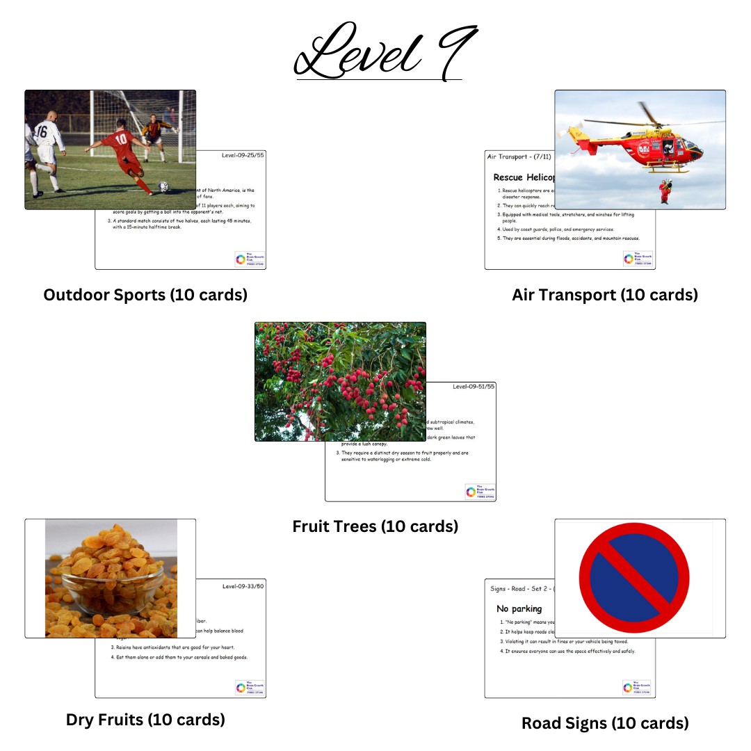 Knowledge Building Picture Cards that enable a child to learn by the method of brain stimulation, these flash cards are specially designed to make it very simple to present.